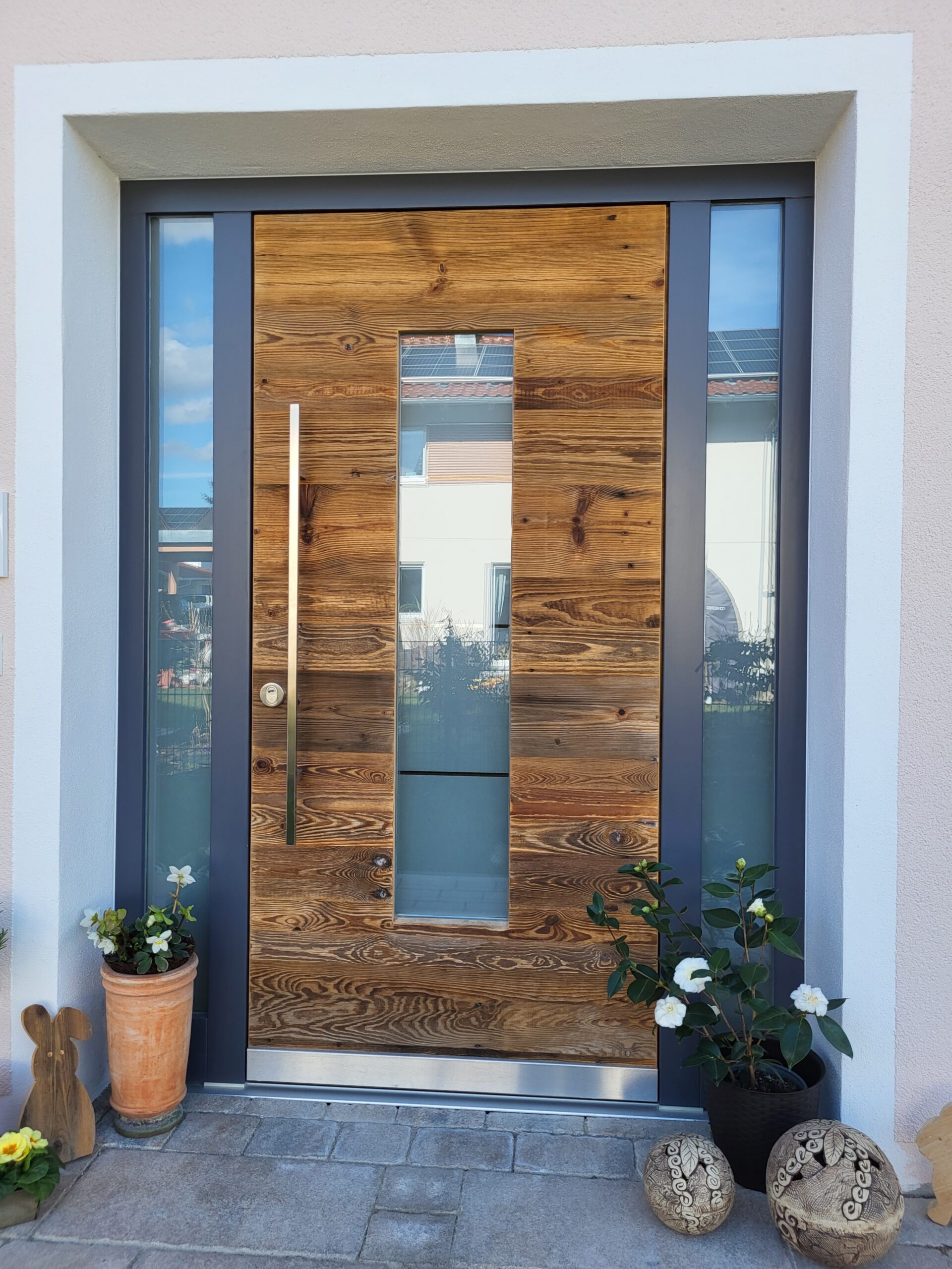 Mit Seitenteilen in Grau